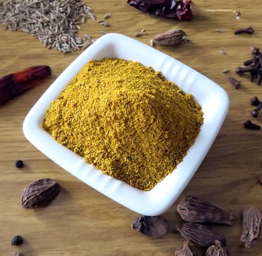 Spice blends vary greatly from region to region in India, and there is no single recipe for "curry." Some common spices include turmeric, coriander, cumin, ginger, and pepper.